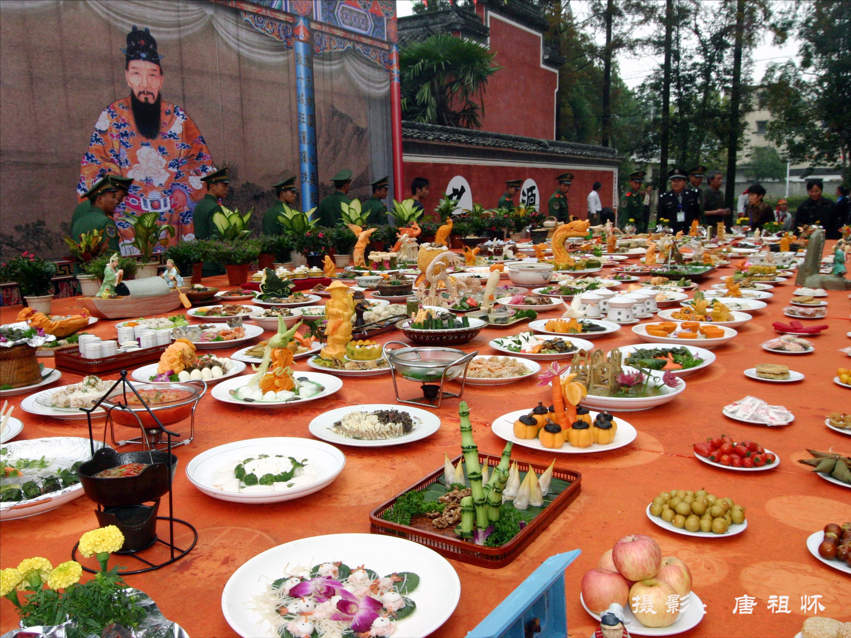 古徽州“一府六县”包括:黟县、歙县、休宁、祁门、绩溪、婺源。徽州饮食文化——徽菜发端于唐宋,兴盛于明清,具有浓郁的地方特色和深厚的文化底蕴,是中华饮食文化宝库中一颗璀璨的明珠。 徽菜的形成与古徽州独特的地理环境、人文环境、饮食习俗密切相关。绿树丛荫、沟壑纵横、气候宜人的徽州自然环境,为徽菜提供了取之不尽,用之不竭的徽菜原料。徽州名目繁多的风俗礼仪、时节活动,也有力地促进了徽菜的形成和发展。在绩溪,民间宴席中,县城有六大盘、十碗细点四,岭北有吃四盘、一品锅,岭南有九碗六、十碗八等。最典型的莫过于祭祀隋末农民起义领袖汪华的“赛琼碗”活动了。这一年一度的祭拜活动在集中展示汪氏族人所精心烹制的数百碗供品的同时,也造就了一代代民间烹饪家。 明代晚期至清代乾隆末年是徽商的鼎盛时期,徽菜也伴随着徽商的发展,逐渐声名远扬。哪里有徽商,哪里就有徽菜馆。徽州人在全国各地开设徽馆达上千家,仅上海就有140多家,足见其涉及面之广,影响力之大。 在悠久的历史长河中,徽菜经过历代徽厨的辛勤劳动,兼收并蓄,不断总结,不断创新。以就地取材,选料严谨,巧妙用火,功夫独特,擅长烧炖,浓淡适宜,讲究食补,以食补身,注重文化,底蕴深厚的特点而成为雅俗共赏,南北兼宜,独具一格,自成一体的著名菜系。